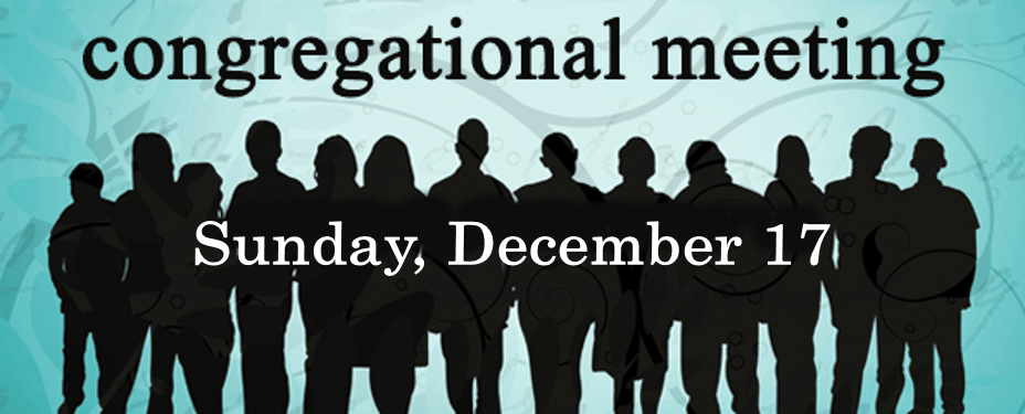 CONGREGATIONAL MEETING – Sunday, Dec 17 after worship. There is much to discuss and present at the meeting: 2018 budget, plans for the next phase of the Building Project, and reports from our Ministry Teams!
