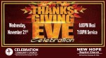 Nov 21, Thanksgiving Eve Meal & Service with New Hope Baptist, 6:000PM