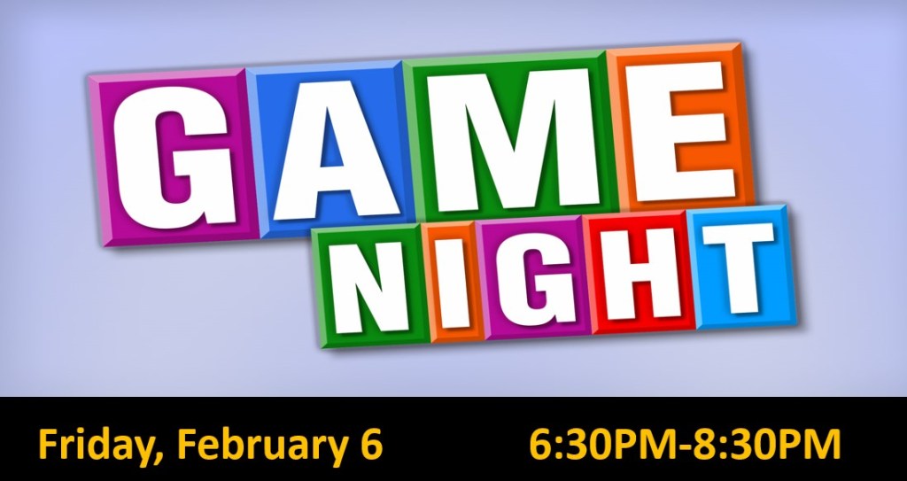 Next Activity: Feb 8, 6:30PM – Game Night at Church